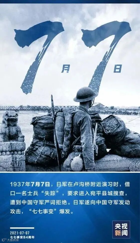 今天是七七事变84周年纪念日,无论你身在何处,请铭记:警钟长鸣,吾辈自强,以史为鉴,开创未来!
