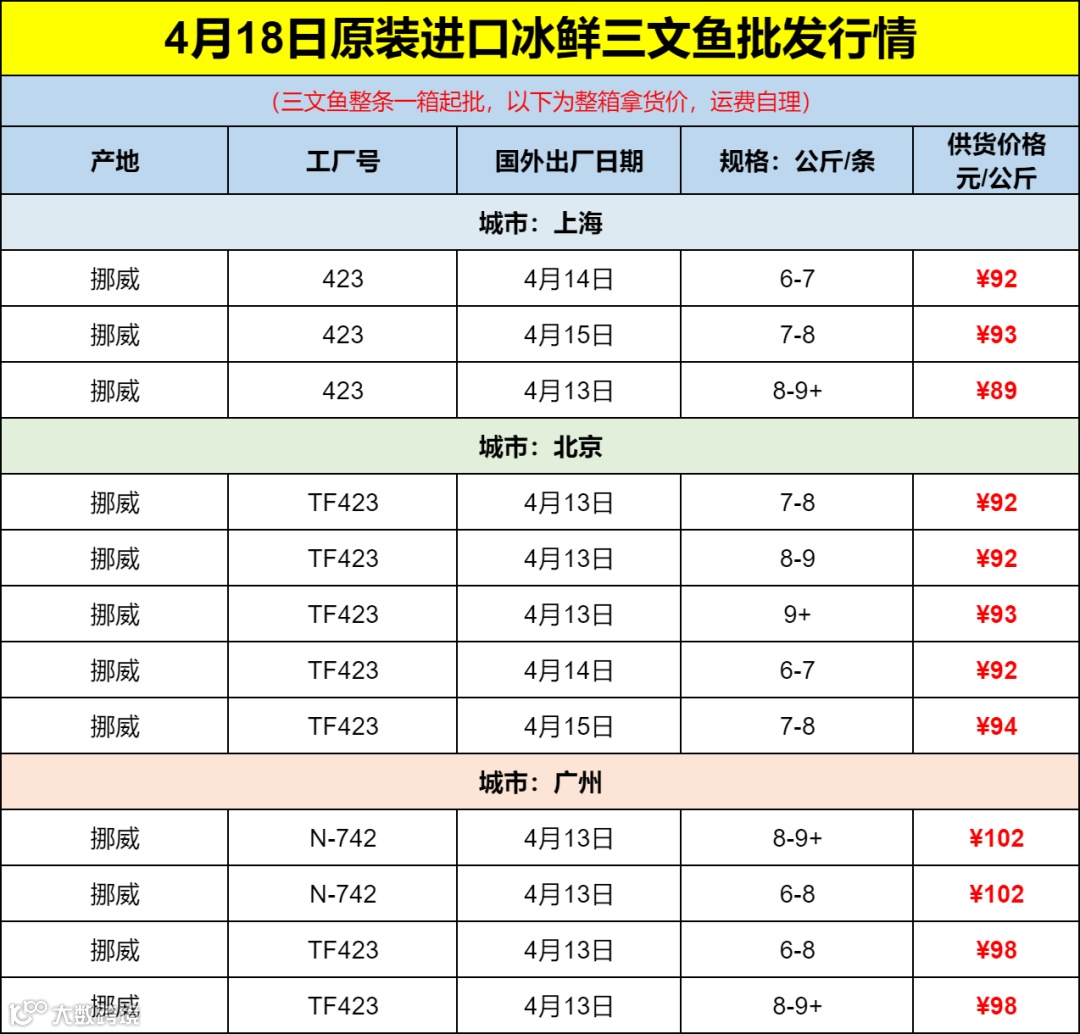 导读:【4.18进口冰鲜三文鱼批发行情】