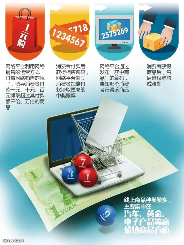 一元购这种商业模式,看似通过互联网平台在销售商品,而实际上是打着电商旗号销售中奖机会,类似国家已叫停的网络售彩业务。