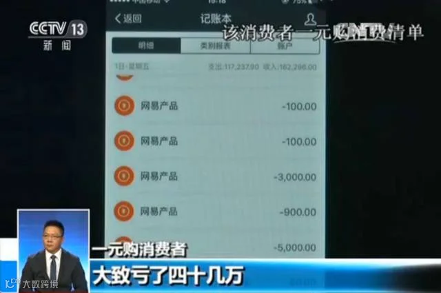 一名“一元购”的参与者表示,以前玩过网易游戏,通过网易公司发来的一些短信,点入“一元夺宝”界面。开始从一块两块投,然后三十五十,然后成百上千,最后就上万。大概从去年12月份开始玩,到如今,大概亏了四十几万。