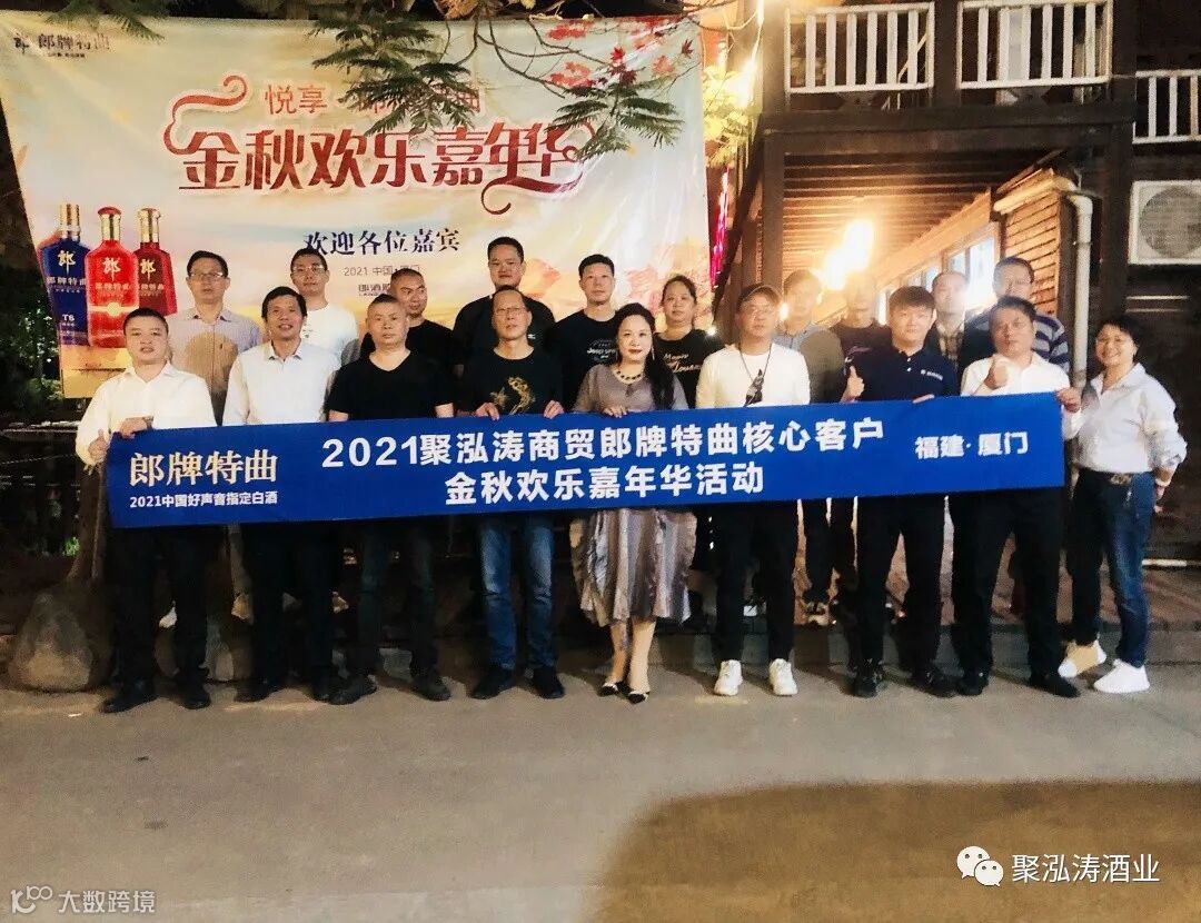11月20日,2021聚泓涛商贸郎牌特曲核心客户金秋欢乐嘉年华活动在厦门成功举行。活动是由聚泓涛商贸倾心打造,主要针对核心客户及各大烟酒行老板,在美丽的夜晚相聚一起品鉴高端酱香白酒,把酒言欢!