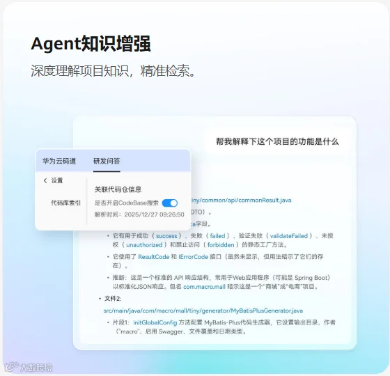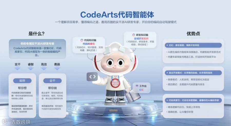 在效率提升方面,华为云码道AI IDE支持IDE、VSCode、JetBrains、CLI等多种 开发环境;通过代码库索引(Codebase)实现对代码仓的深度理解,上下文理 解更精准,并通过减少推理轮次来提升效率,同等任务可节省30% Token,让开 发者获得“更准、更快、更省”的体验。此外,华为云码道支持鸿蒙系统官方推 荐的原生应用开发语言ArkTS,能够为鸿蒙开发者提供更准确的代码生成。