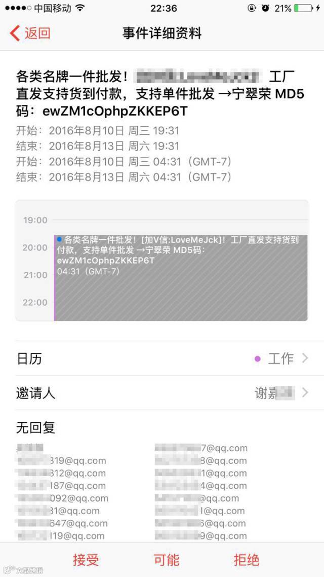 所以最坏的结果可能是:不停轰炸你iPhone,直到日历占满了澳门赌x场博x彩投x注!即使你不上当也要恶心死你,想想都可怕……