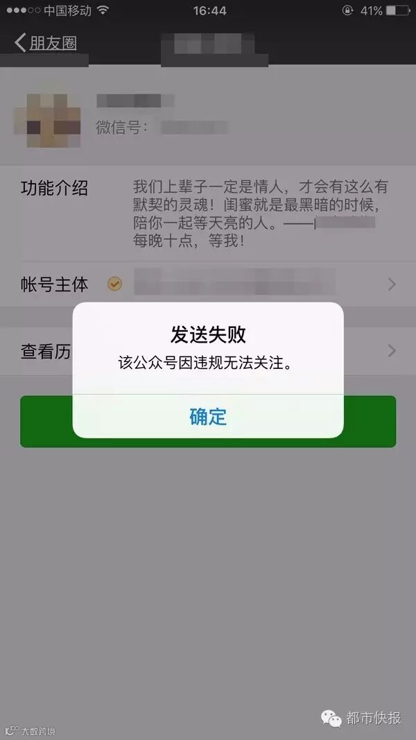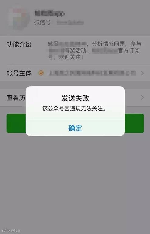 该公众号已因违规无法关注,