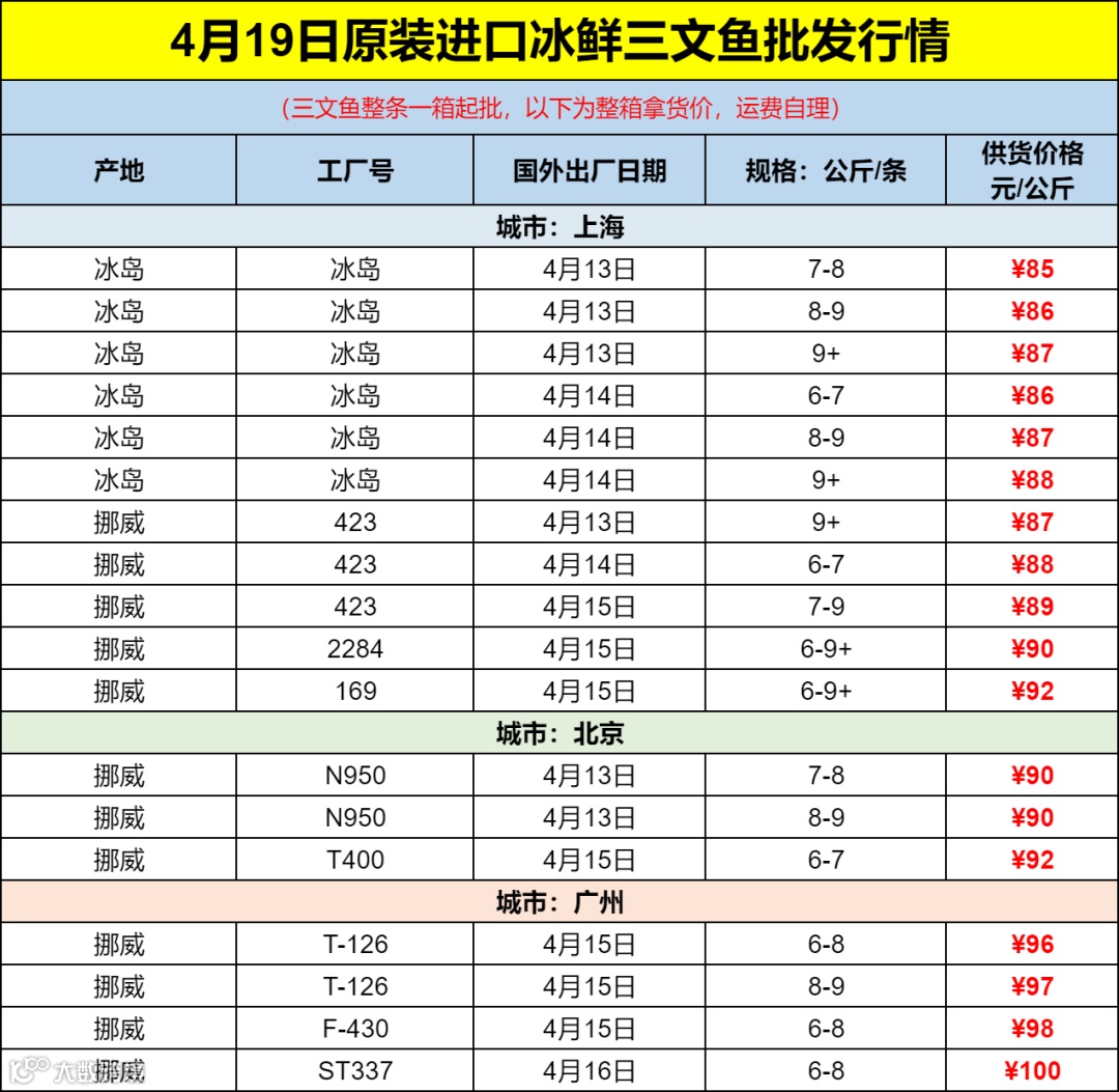 导读:【4.19进口冰鲜三文鱼批发行情】