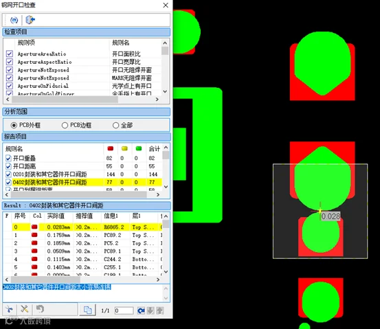 ● 钢网品质与稳定性双提升:依托软件内置工艺审查规则实现100%自动化审查,消除传统人工设计中易出现的错开、漏开、多开等人为错漏问题,钢网工艺品质稳定性得到有效保障,进一步降低了80%停线风险;同时基于软件快速智能审查工艺细节,能够在生产前及时识别如焊盘间距不足等工艺隐患,提前协同钢网厂进行优化修改,从设计源头规避后续生产问题,确保高品质焊接!