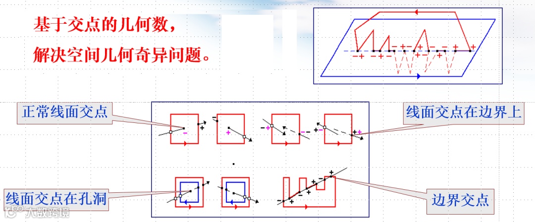 计算:几何关系的重构,几何奇异的认定与处理,计算稳定性。