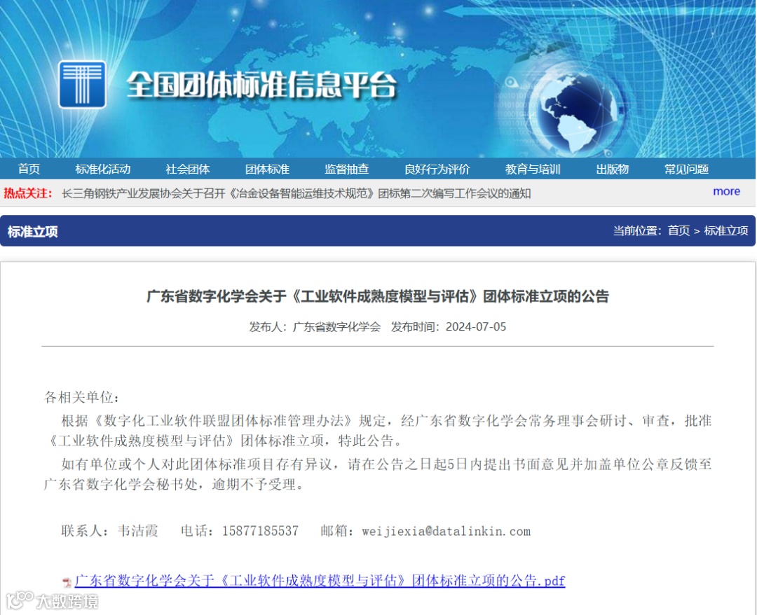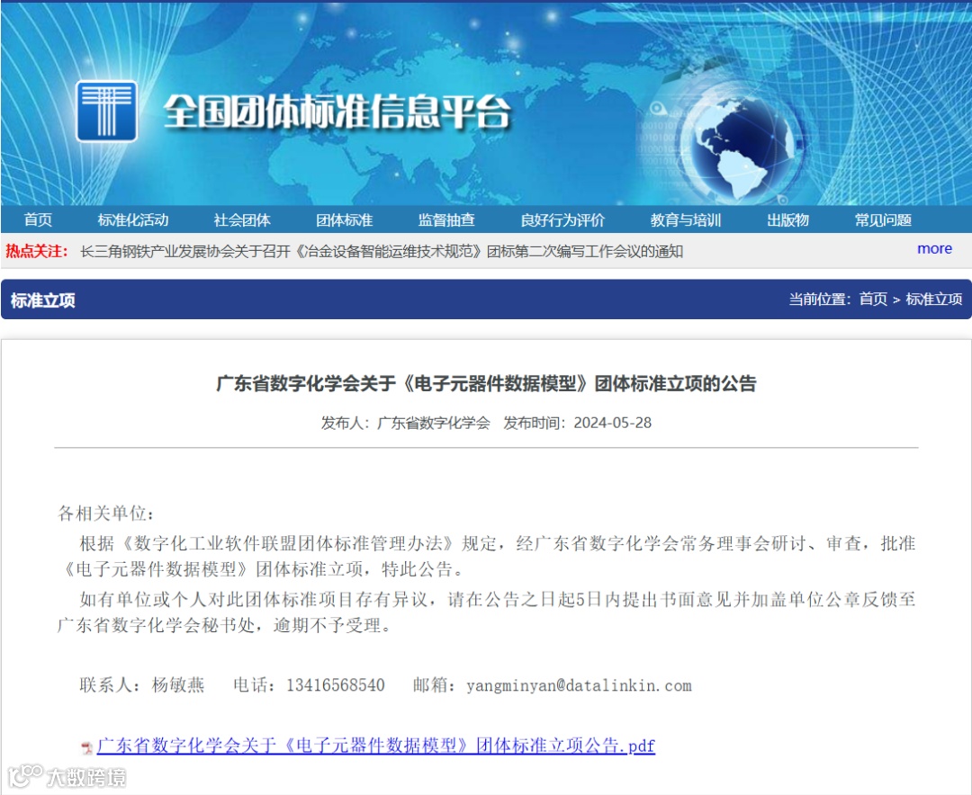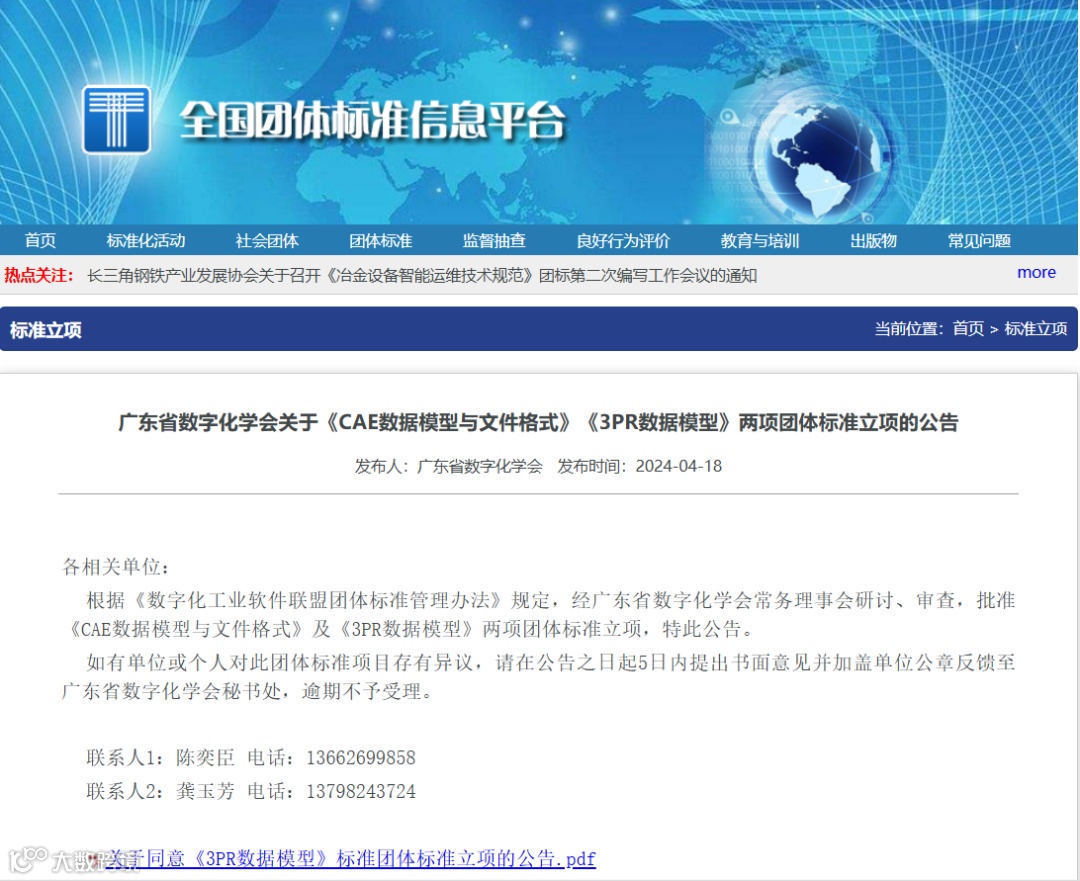2024年4月-7月,由广东省数字化学会牵头,100+家单位/高校/科研院所联合参与的DISA《CAE数据模型与文件格式》、《3PR数据模型》、《电子元器件数据模型》、《工业软件产品成熟度模型与评估》、《MBSE数据模型及交换》5项团体标准在DISA官网及全国团体标准信息平台公告立项。从底层数据建设到顶层产品交付评价,新一代工业软件标准体系框架逐渐显形。