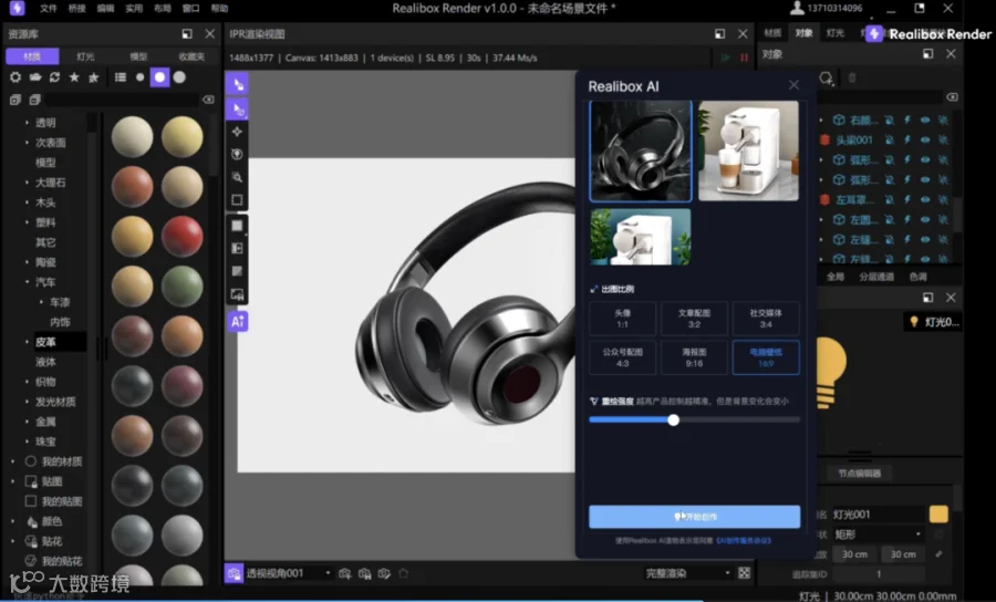 Realibox Render的用户界面设计注重用户体验,采用时尚的中文界面布局,直观且易于操作,可大大降低用户的学习成本,国内中文初学者也能快速上手,从而在用户体验上带来显著提升。