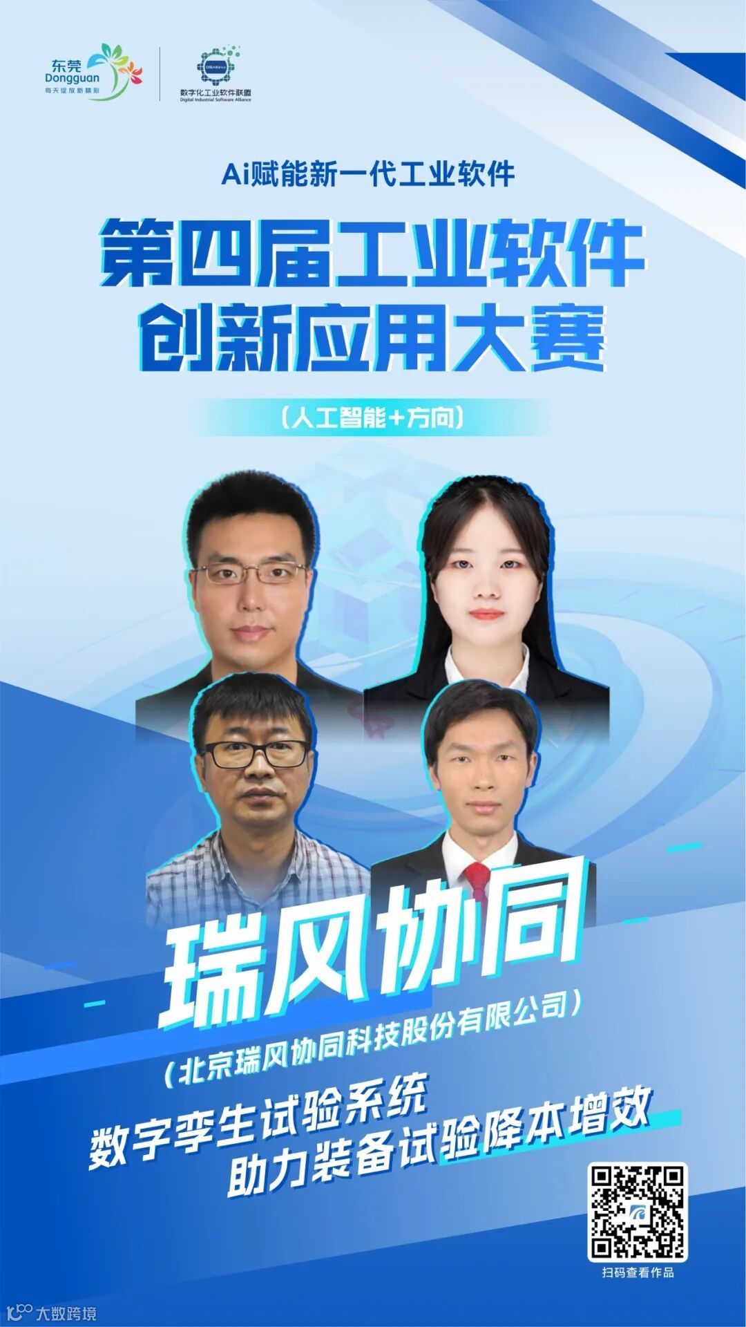 在第四届工业软件创新应用大赛(人工智能+方向)中,来自北京瑞风协同科技股份有限公司的瑞风协同团队,积极尝试把AI与数字孪生技术深度融合,并以《基于人工智能的数字孪生试验系统》获得工业AI应用场景创新奖。