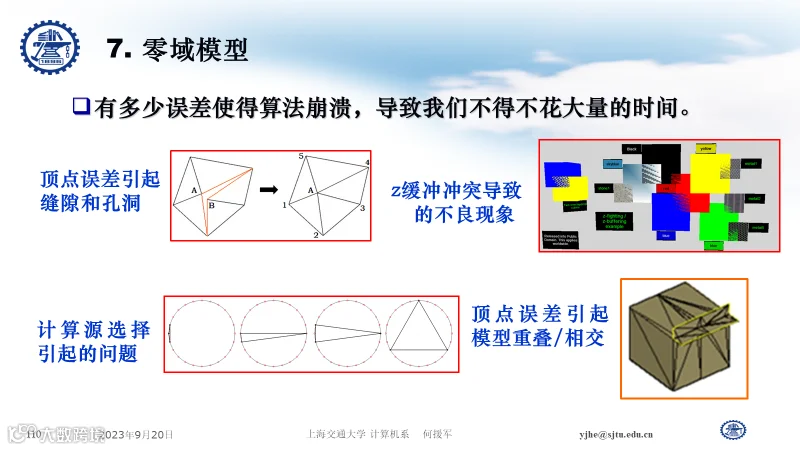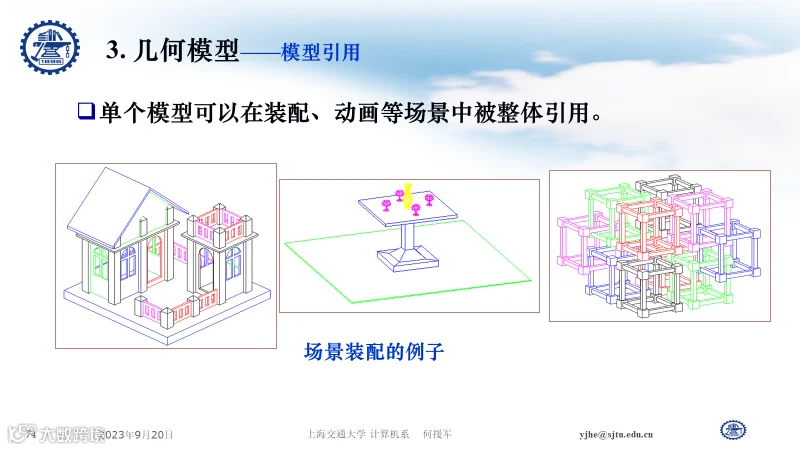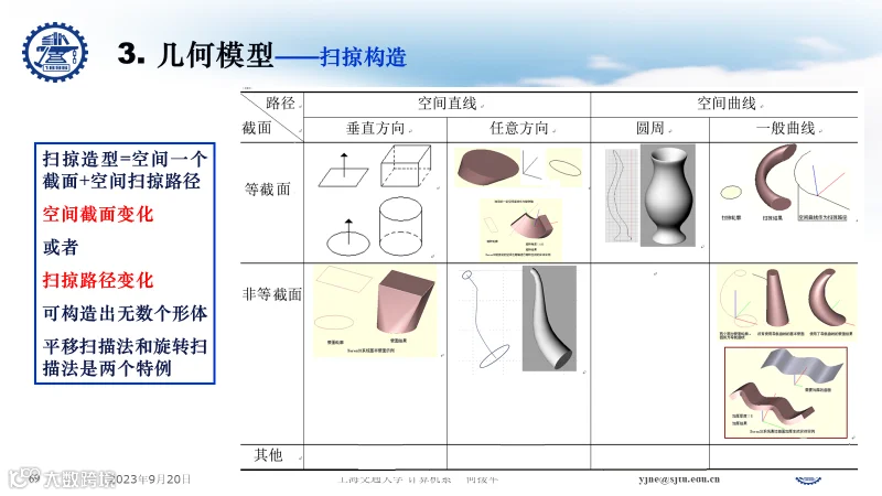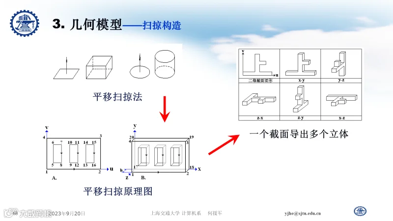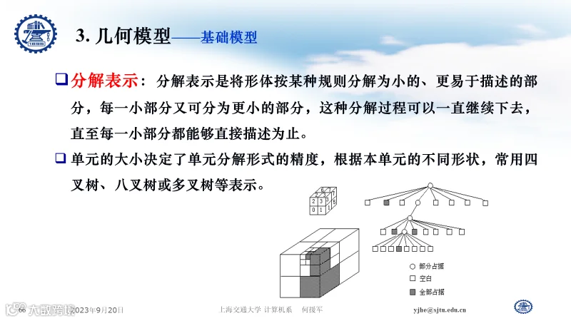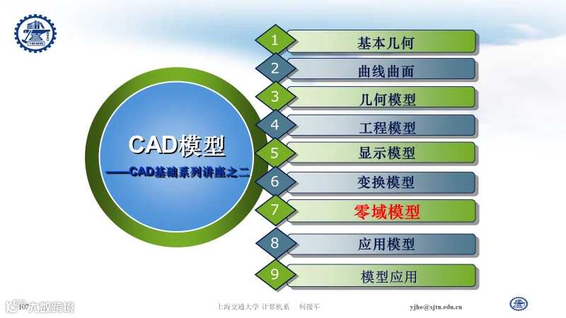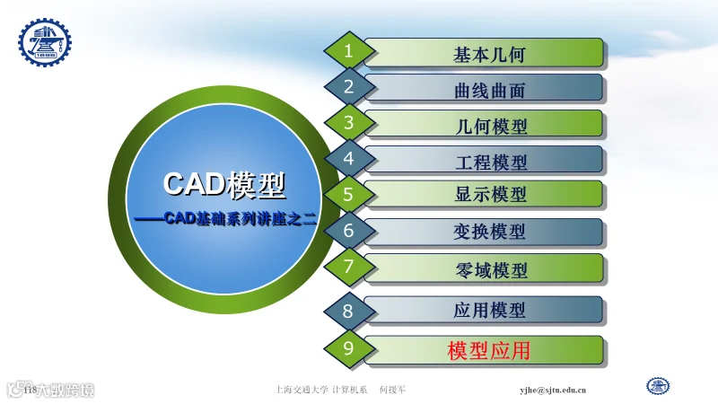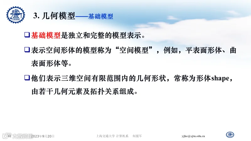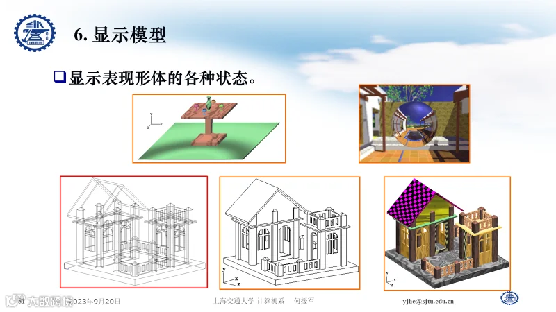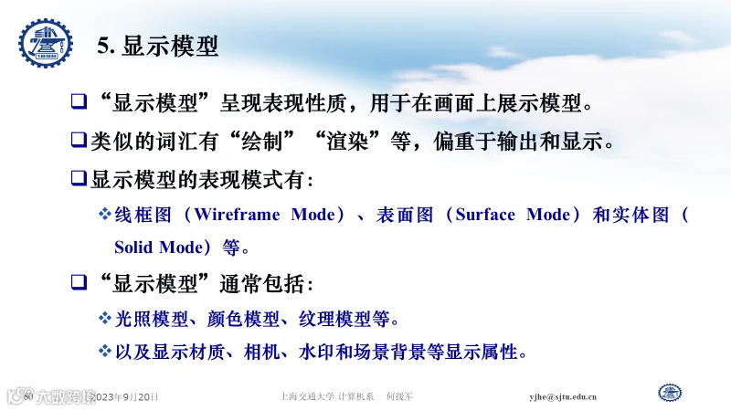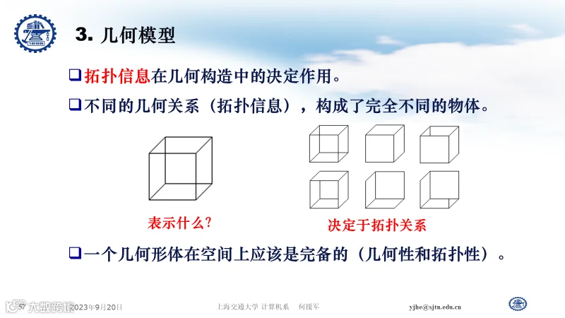 围绕几何模型的构造、操作、运算、变换、显示和传输、转换等展开。
