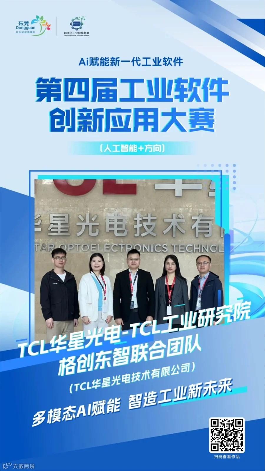 在第四届工业软件创新应用大赛(人工智能+方向)中,TCL华星光电-TCL工业研究院-格创东智联合团队,以《多模态AI驱动的天枢平台,赋能高精度工业质检智能解决方案》获得工业AI应用场景创新奖。