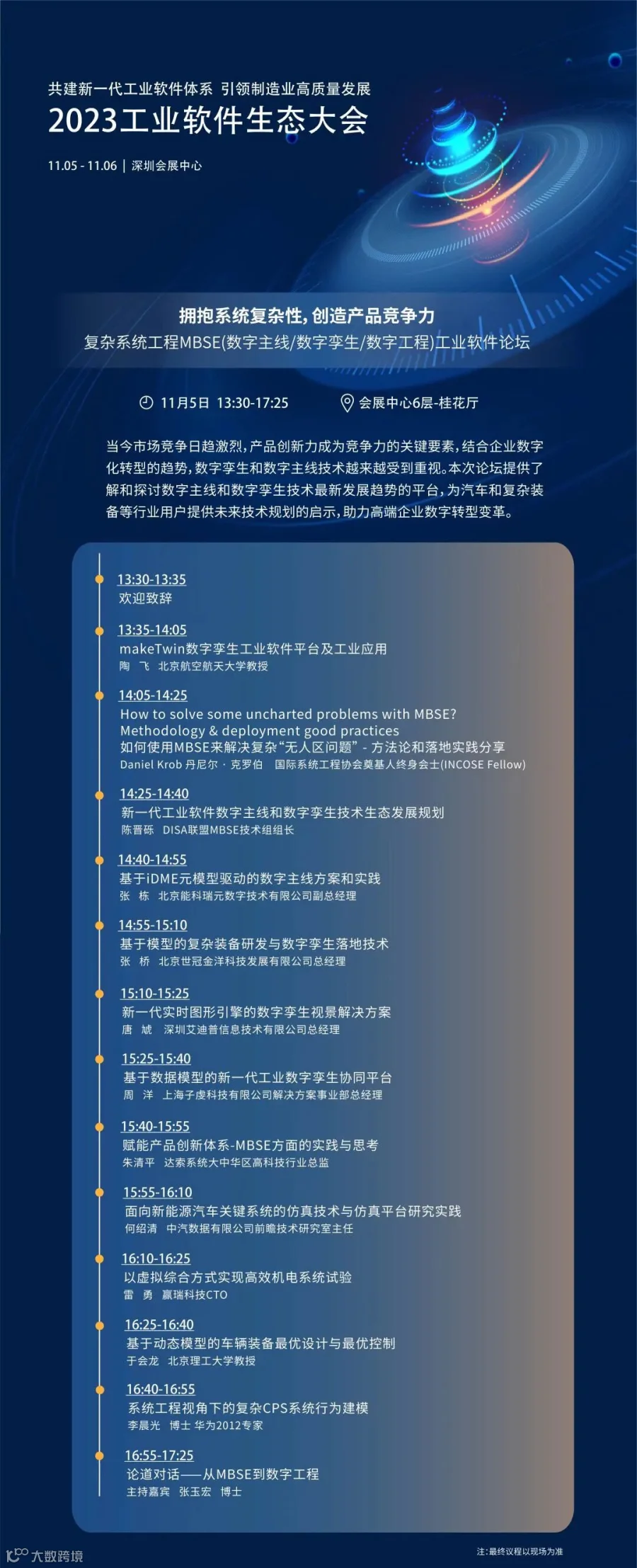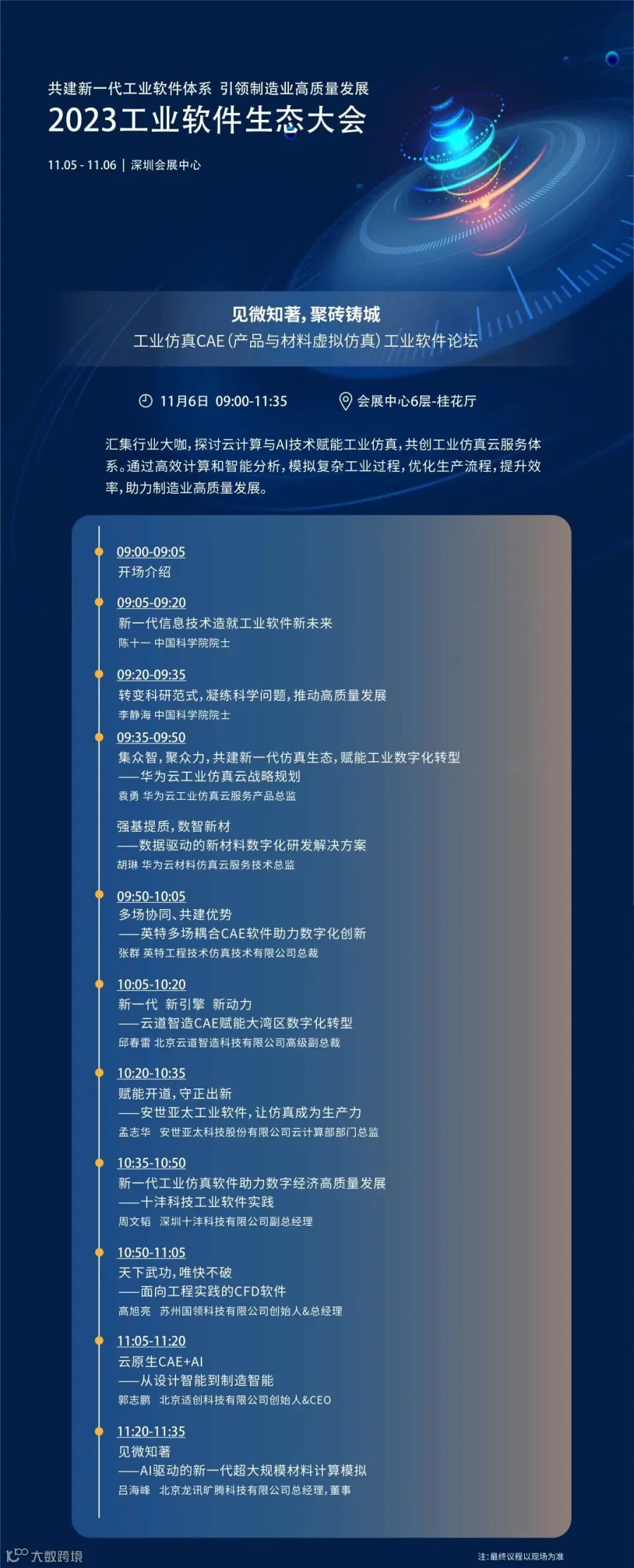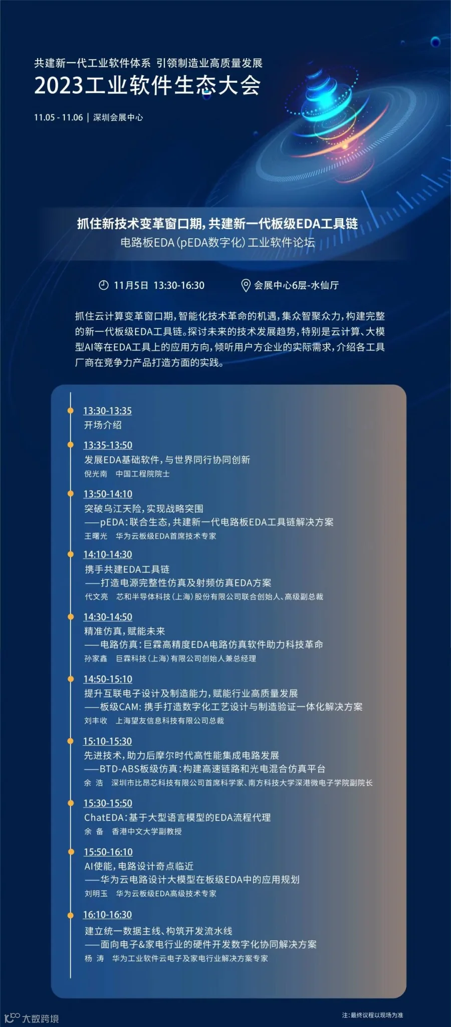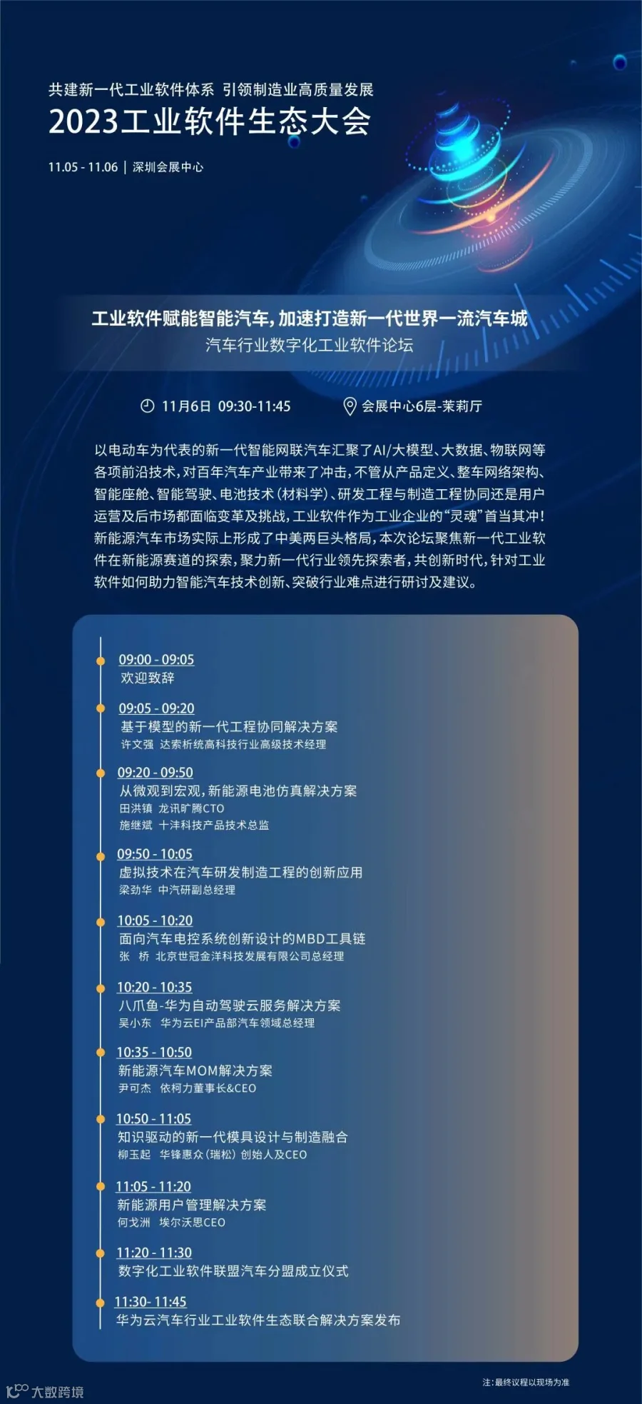 为深入实施国家软件发展战略,促进数字技术与实体经济深度融合,集中展示工业软件最新技术发展与应用实践成果,推动工业软件产业供需精准对接,构建开放、协作、共享的新一代工业软件生态体系,广东省工业和信息化厅、广东省科学技术厅、广东省教育厅、深圳市人民政府定于2023年11月5日至6日在深圳市举办2023工业软件生态大会。