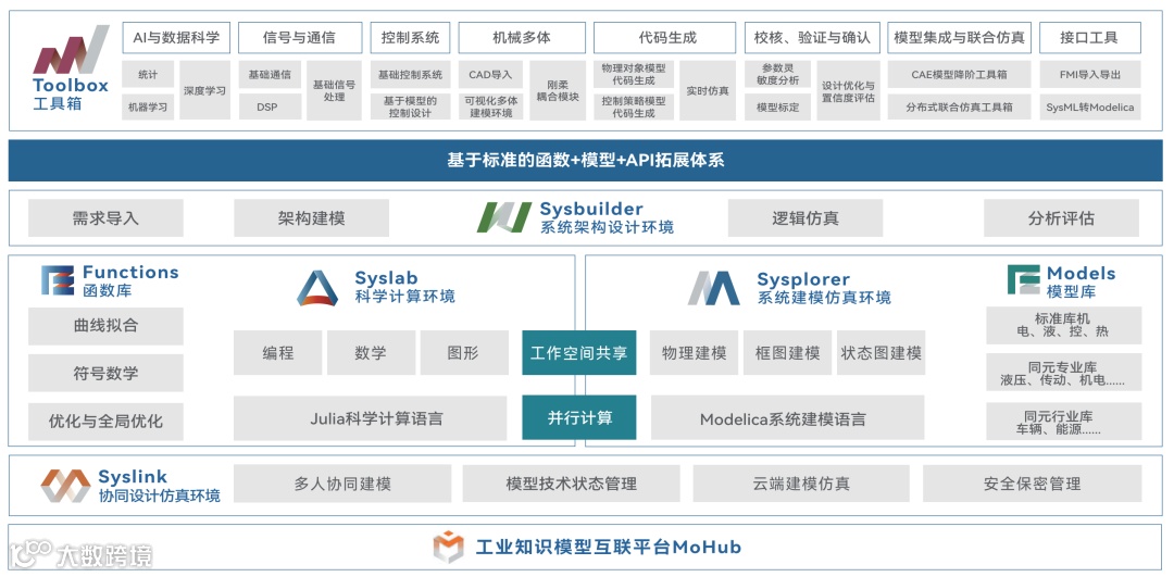 (2)云化工具:MoHub平台提供五类云化工具,分别是云端建模仿真工具Sysplorer Online、云端科学计算工具Syslab Online、云端应用开发工具APP Designer;以及承载以上三者能力,可用来管理模型、APP、文件、版本等的云化工具仓库;还有提供给诸如工科院校的教务组、培训机构的培训教师、开发大赛的组委会等管理者,便于进行数据阅览和社群管理的运营后台。