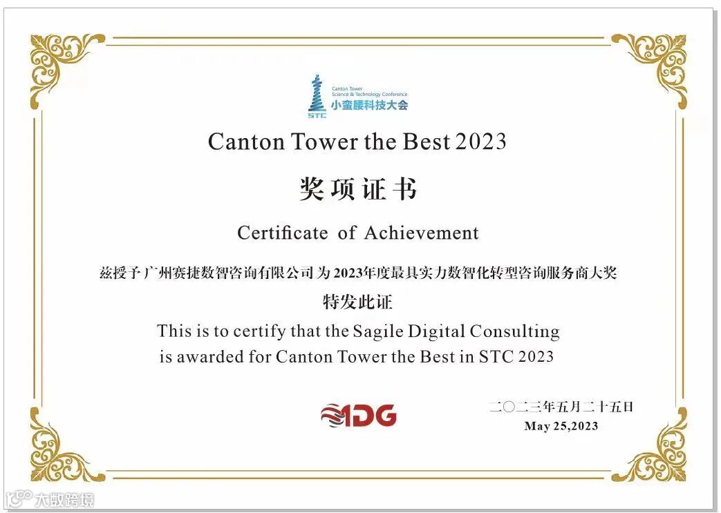 大会特设Canton Tower the Best奖项,旨在鼓励科技界的厂商、服务商和杰出的企业家代表为产业发展做出的贡献。广东省数字化学会会员赛意信息控股子公司-广州赛捷数智咨询有限公司凭借成熟的产品服务体系和业界领先的企业数智化咨询能力,荣获“2023年度最具实力数智化转型咨询服务商”大奖。