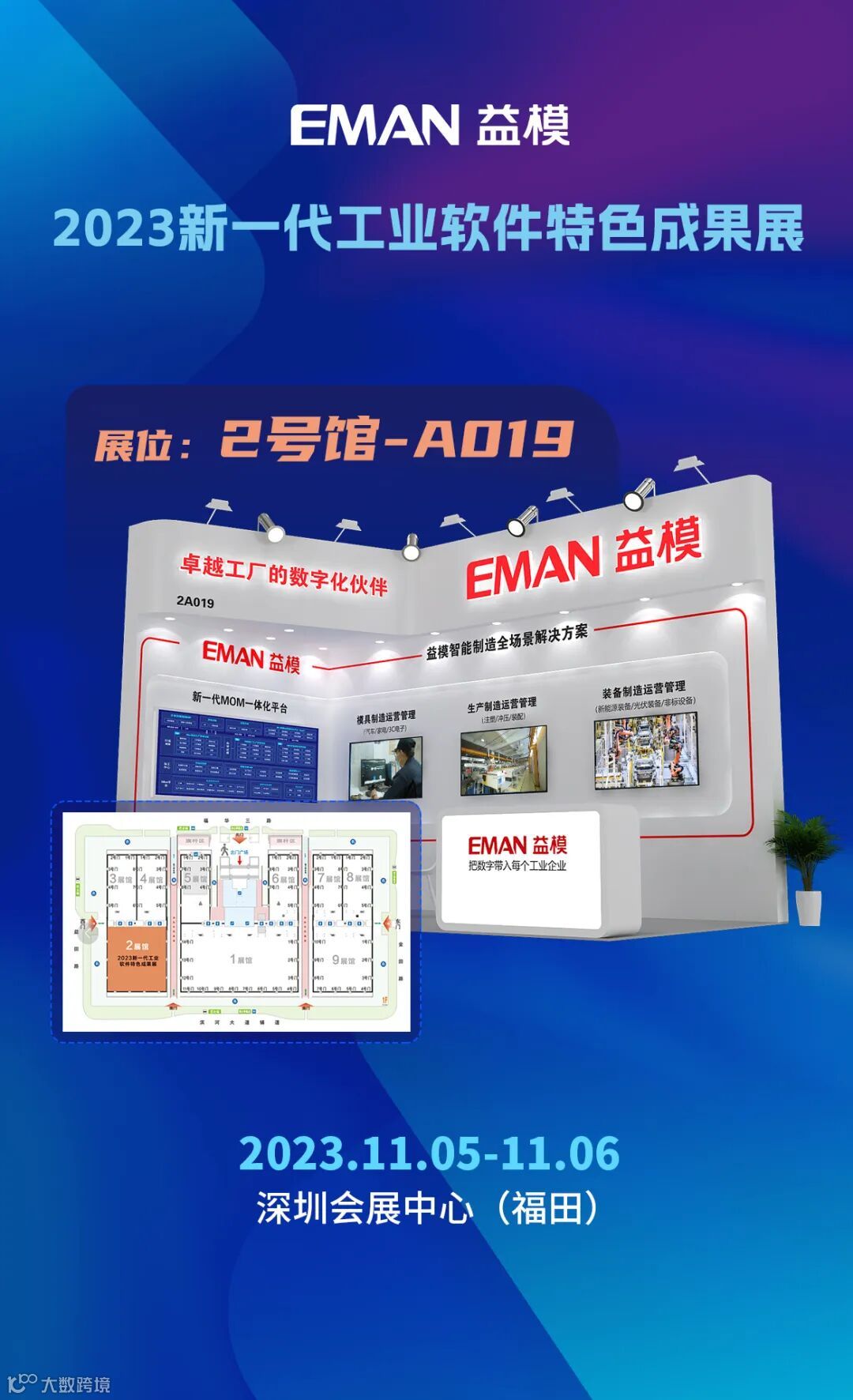 益模展区设在2展馆A019,通过展示、体验和现场讲解益模新一代MOM一体化平台,以及益模方案在模具制造、装备制造及生产制造行业的具体实践应用,为您提供一站式智能解决方案体验。