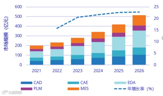 图9-中国核心工业软件市场预测 2021-2026(图源IDC)