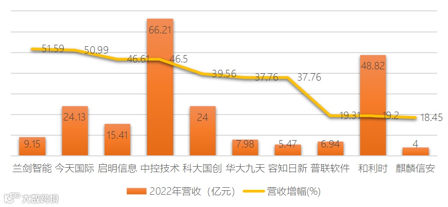 图8-中国工业软件上市公司2022年度营收增幅前十及营收增幅