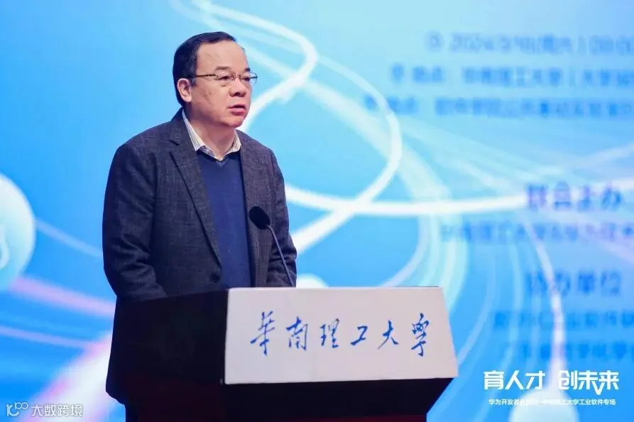 华南理工大学软件学院院长蔡毅在《校企携手,探索面向工业软件的卓越人才培养模式》主题演讲中,分享了学校与华为合作案例与育人成效,并介绍了聚焦工业软件校企合作的目标和规划。