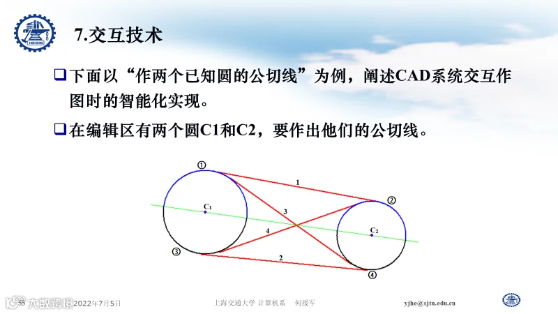 教育的本质是思维教育,图学教学更是应发挥图形的特色,进行图学思维教育。需要看到的是,画法几何学的投影理论也是CAD软件的的理论基础之一,在开发中是被大量应用的。尺规作图方法以交互作图方式替代,只是作图工具的改变。工程图学课程也不是一个应用培训课程,不主张在高等教育中进行“软件如何使用”这类教学,好像在大学课堂上讲“Word如何使用”一样,这是职业培训类的事情。