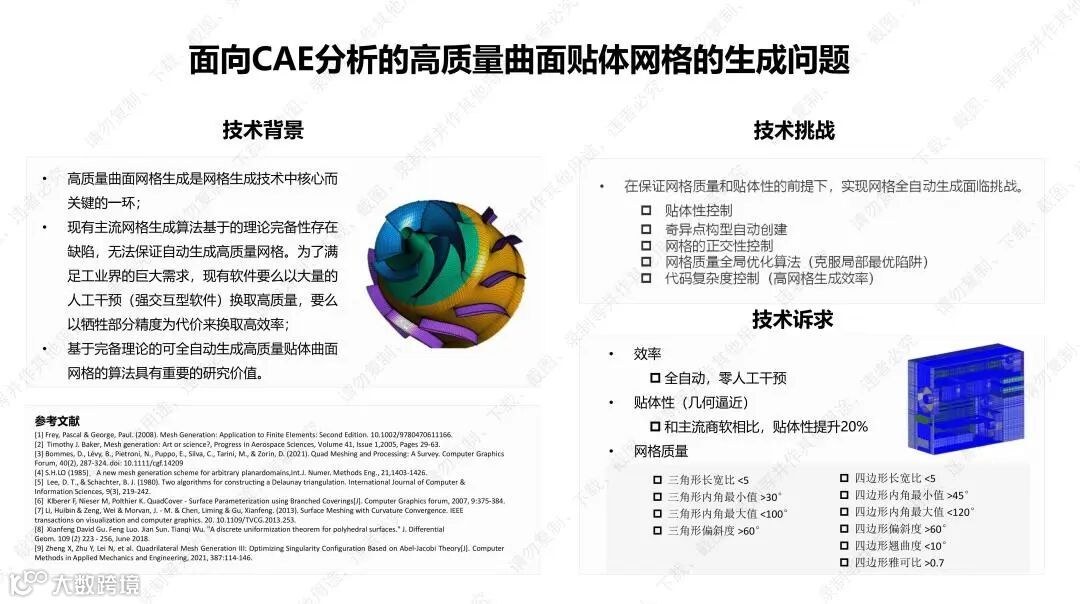 (1)面向CAE分析的高质量曲面贴体网格的生成问题