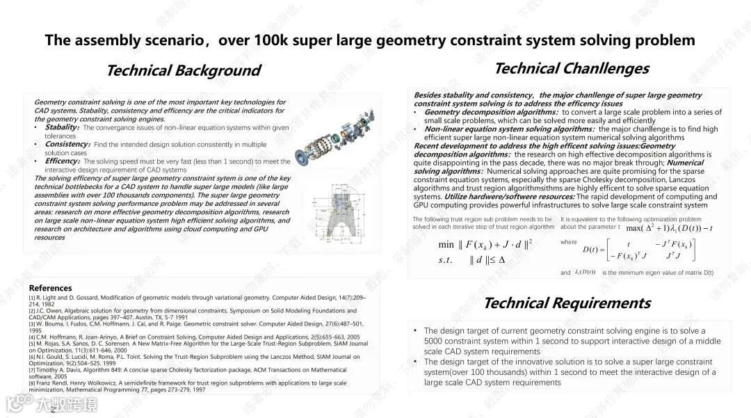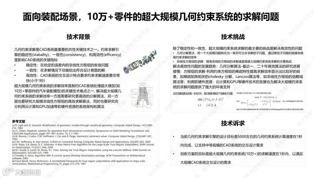 (2)面向装配场景,10万+零件的超大规模几何约束系统的求解问题