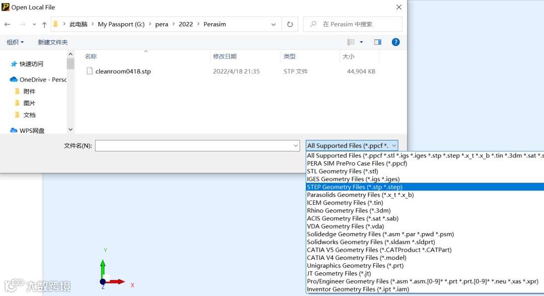 PreCFD的前处理接口可以导入多种CAD模型,本案例导入的是step格式的几何文件。