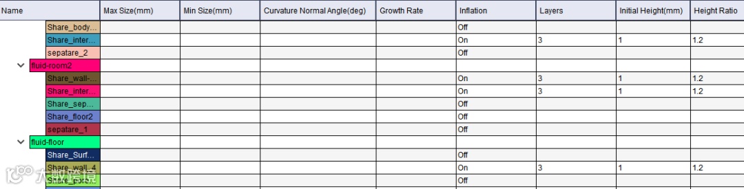 可以点击Setting Check功能,以表格的形式更加直观的查看、确认和修改全局、局部以及边界层相关设置。