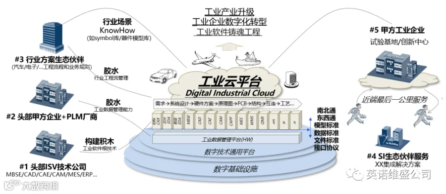 在数字底座的支撑下,可以实现“打造国产工业软件生态,共建工业云平台,让天下没有难做的产品”这个美好愿景,头部ISV技术公司、头部甲方企业和PLM厂商、行业方案生态伙伴、SI生态伙伴服务、甲方工业企业,各司其职各取所需,围绕工业云平台开展自主工业软件研制工作。相信所有工业软件的利益攸关方,都能从上图中找到自己的位置,成为工业软件云平台的生态合作方。