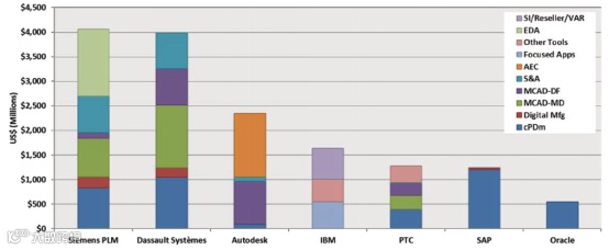 1、cPDm,协同产品数据管理系统,也有把它叫做产品生命周期管理系统,从图中可以看出Siemens PLM(Teamcenter系列),Dassault System(Enovia系列),PTC(Whichill), SAP,Oracle是主要的前五名供应商。