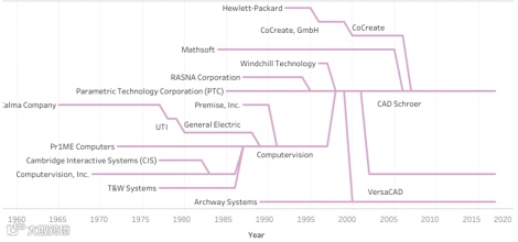 关于这些公司以及产品的发展回顾,这里就不做太多的描述了。可以拜读北京航天航空大学唐荣锡教授的系列文章《CAD产业发展回顾与思考》;关于公司发展过程中并购关系,国内有许多研究人员也做了大量查与研究,写了不少文章,重复的内容,这里不再赘述。