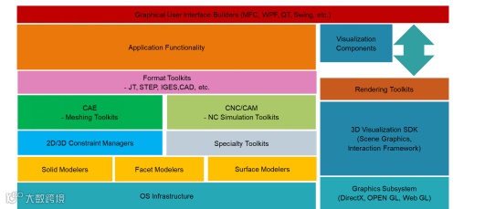 图29:商业化CAD/CAE/CAM工业软件的架构及覆盖的技术栈,Created by Vincent LU