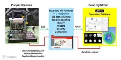 在这里,国外的仿真厂商Ansys和物联网厂商PTC Thingworx在电机、泵等设备上的合作,已经提供了很好的参考。