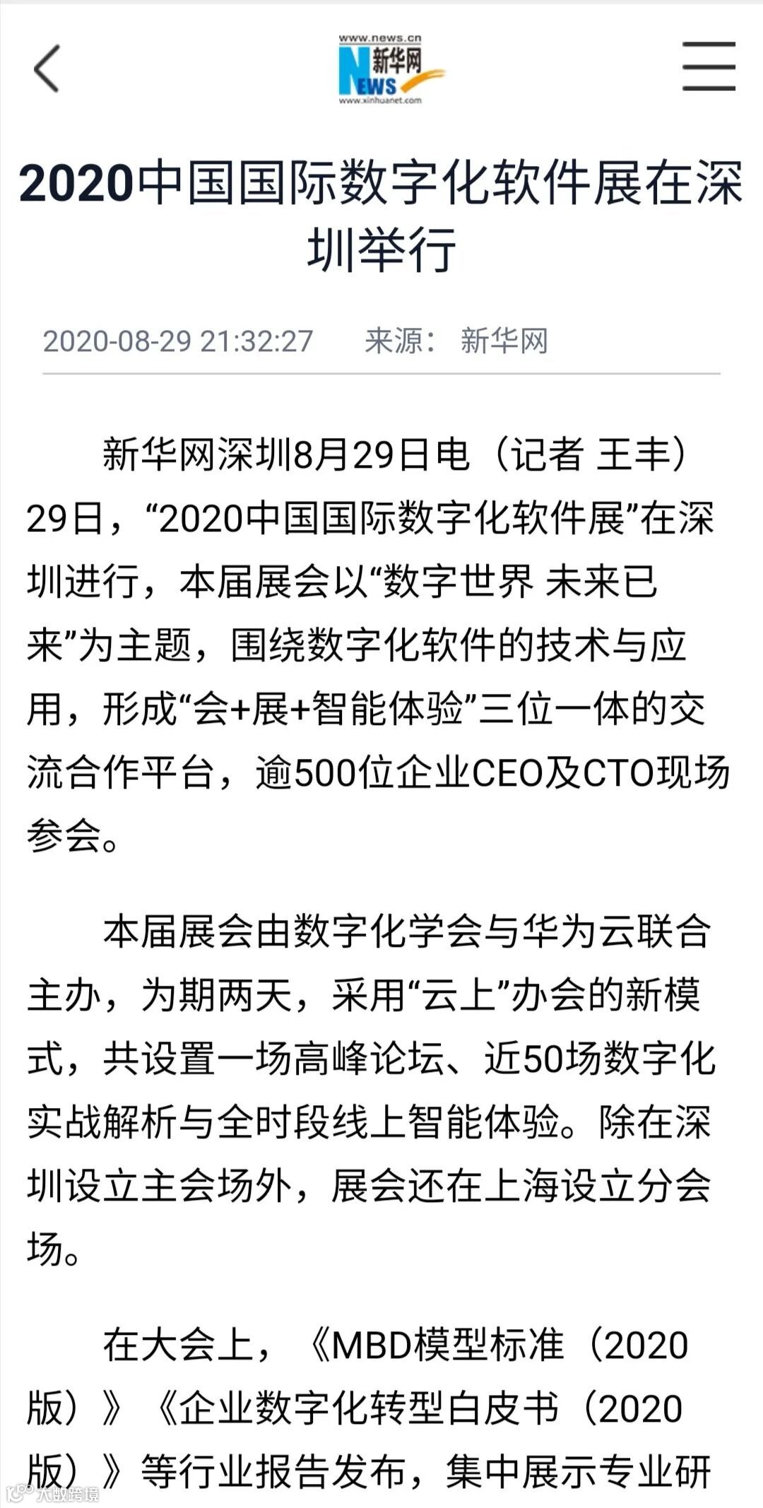 由深圳市科学技术协会指导,数字化学会与华为云联合主办的2020中国国际数字化软件展在深圳、上海圆满落幕!