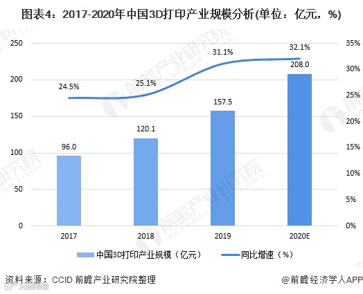 2、前瞻产业研究院:2021年中国3D打印产业市场规模与发展前景分析
