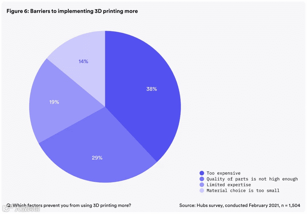 成本是制约增材制造技术大规模推广的关键因素。超过38%的用户认为增材制造技术虽然具有独特的优势,但是成本过高,一旦涉及到大批量生产的零部件,仍然需要依靠传统的铸造、锻造、机加等工艺。因此,增材制造要在整个制造业中占有一席之地,降低成本势在必行。GE公司近日推出了新的3D打印零件——涡轮机引气部件,证明了金属3D打印在成本上也可以和铸造工艺一较高下。相信在不久的将来,随着增材制造技术的不断进步,成本逐步降低,增材制造取代传统制造工艺的案例会越来越多。
