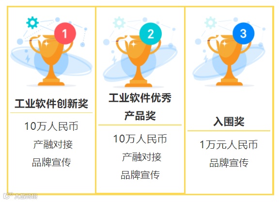 大赛设150万现金奖金,设工业软件创新奖、工业软件优秀产品奖以及若干入围奖,同时提供投资孵化、产融对接、品牌宣传等权益。