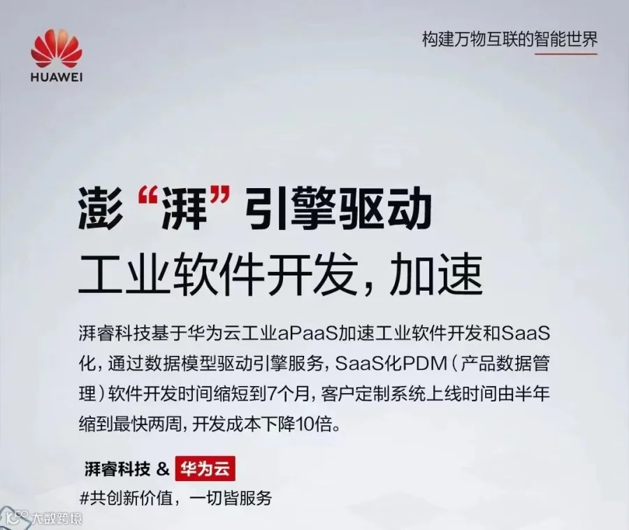 “我们之前用两年时间了单体架构PDM软件,为每个客户定制化上线至少也需要半年。现在基于华为云的数据模型驱动引擎(Data Model Engine)我们只用了7个月就构建了SaaS化PDM,系统上线只需2周,开发成本下降10倍。曾经我们有一个客户提了10个传统PDM不支持的新定制需求我们一天就完成了7个,开发和响应速度让客户非常满意。”