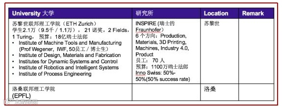 4. 产业人才与教育:瑞士产业最重要的支撑是其教育体系。从10年级(16岁)起,超过80%的瑞士学生选择进入职业技术学校开展 3-4年的“双元制” 学习。只有 20% 不到的学生会选择读大学。瑞士、德国和奥地利是双元制教育落实得最好的三个国家。瑞士培养工程师的大学共有两所联邦理工学院(ETH 和 EPFL,具有从学士到博士学位授予权),八所应用科技大学(具有学士到硕士学位授予权)。这几所瑞士大学对学生的动手能力训练是相当扎实的。