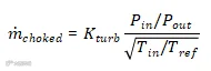 然后压比、修正的无量纲转速确定修正的无量纲质量流量,再查表确定涡轮效率η并计算无阻塞发生情况下的质量流量: