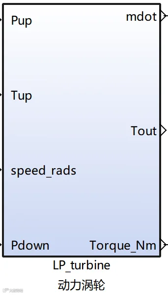 高低压涡轮之间如果直接相互连接会存在代数环,在求解上有数值问题。因此,在高低压涡轮之间加入了一个压力延迟模型。在实际燃气涡轮机中,高低压涡轮间的气体流动也是需要时间的,因此该模型具有一定的物理意义。