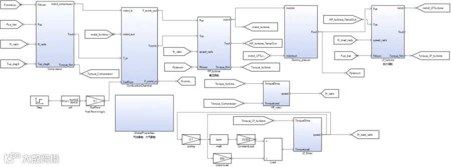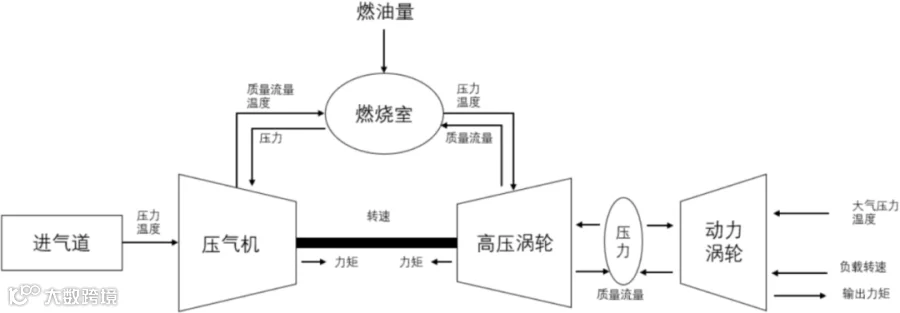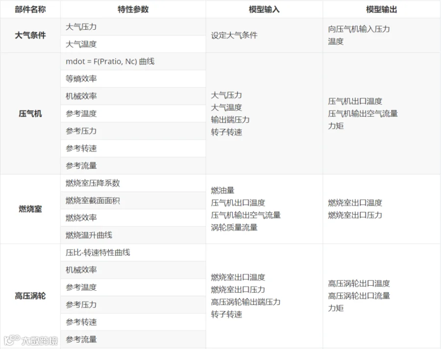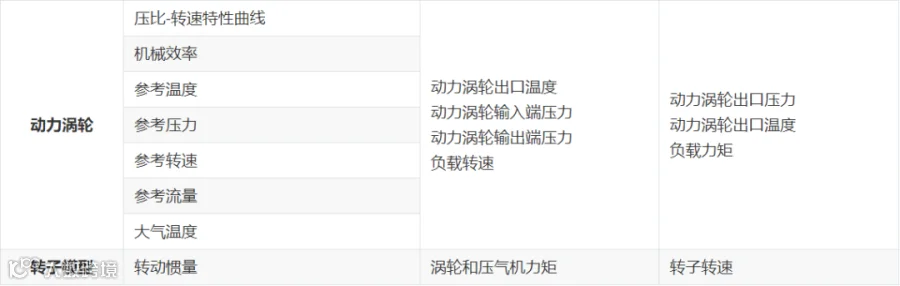 通过热力学方程,本模型可以仿真涡轴发动机的稳态和动态显影。模型的参数和每个模块的输入输出描述: