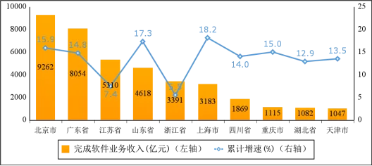 主要软件大省收入占比小幅回落。1—5月份,软件业务收入居前5名的省份中,北京市、广东省、江苏省、山东省、浙江省软件收入分别为9262亿元、8054亿元、5310亿元、4618亿元和3391亿元,分别增长15.9%、14.8%、7.4%、17.3%和5.5%,五省(市)合计软件业务收入30634亿元,占全国比重为70.9%,占比较去年同期回落0.1个百分点。