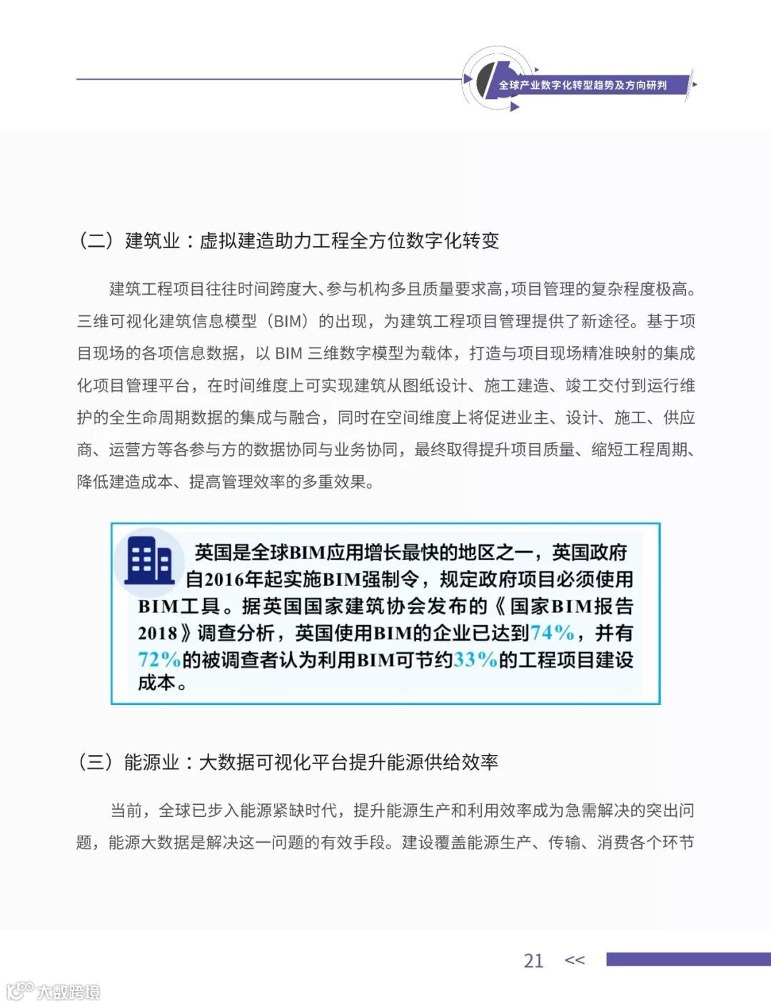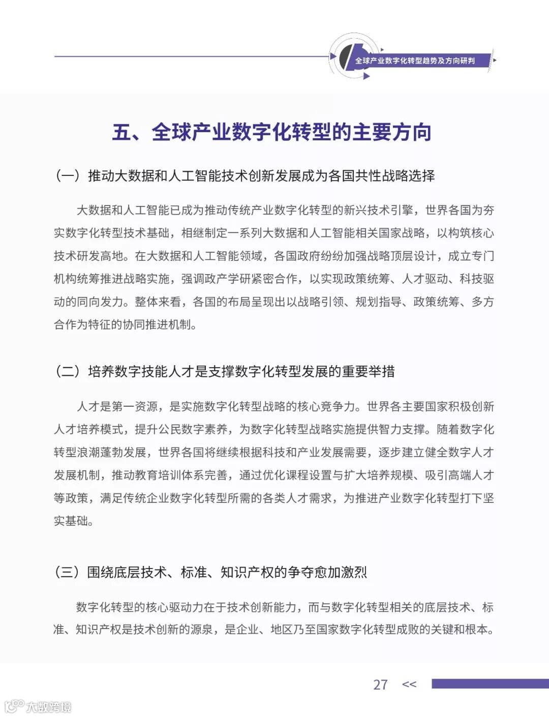 《全球产业数字化转型趋势及方向研判》。该报告结合国内外领军企业的具体实践经验,对全球产业数字化转型的基本趋势、面临问题、布局特征、典型模式、主要方向等做出研判。