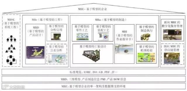 MBE(Model Based Enterprise,基于模型的企业),企业将其在产品全生命周期中所需要的数据、信息和知识进行整理,结合信息系统,建立便于系统集成和应用的产品模型和过程模型,通过模型进行多学科、跨部门、跨企业的产品协同设计、制造和管理,通过模型支持技术创新、大批量定制和绿色制造。