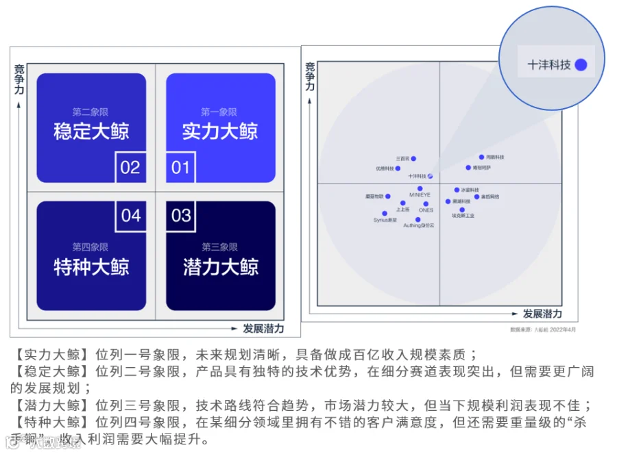 十沣科技位列二号象限,获得“稳定大鲸”称号。评审委员会认为,“稳定大鲸”在细分赛道处于头部,拥有突出的竞争实力,但还需加速研发与前瞻性产品布局。