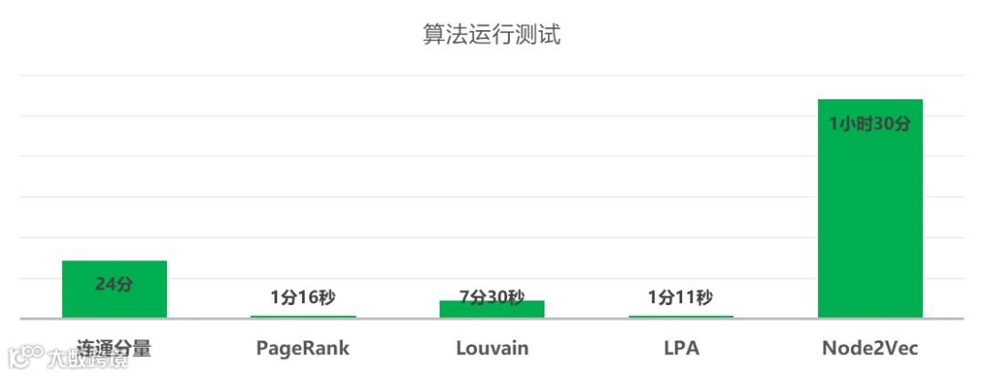 故结合上述建模流程,探索图计算在“潜客发现”场景的效果。具体数据实体(节点)有手机号、地址、邮箱等,关系有亲属关系、交易关系等,属性有姓名、性别、年龄等,按照上述流程对有154万节点、917万条边及34个属性的图数据进行处理,构建相关特征,各算子运行效率如下: