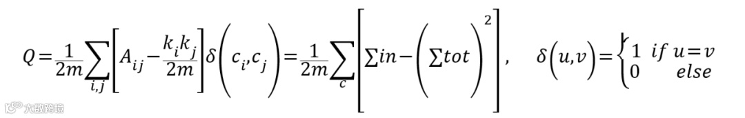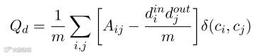 表示与子图c内的节点相连的边的权重之和。基于模块度的社区发现算法,都是以最大化模块度为