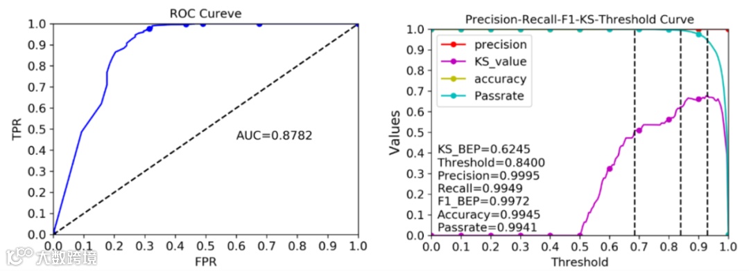 最终,对于具有1亿节点、15亿条表的图数据,提取特征后构建分类模型。其效果如下图所示: