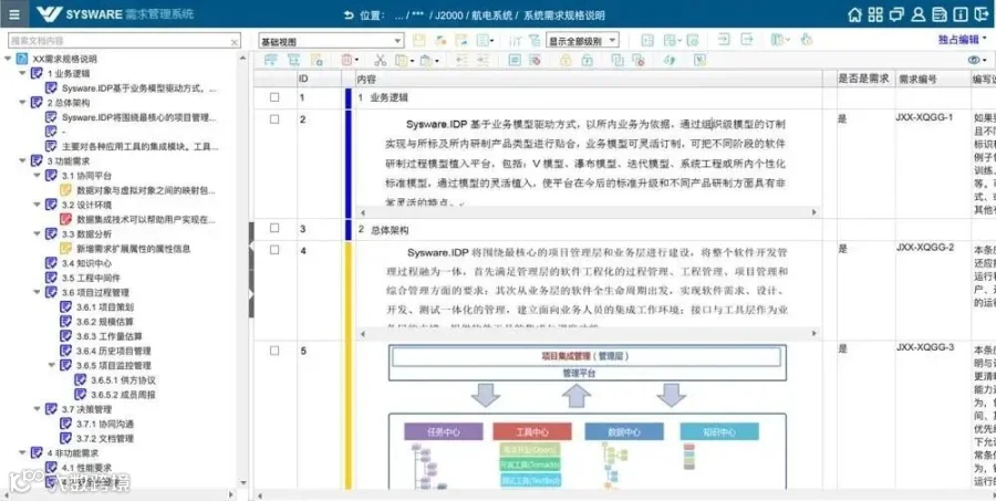 通过增强产品研制管理能力,建立产品需求与配套软硬件配置项之间研制、变更、交付的管理过程;通过需求管理工具SYSWARE.ORM,加强需求的规范化管理,并与产品数据进行关联。